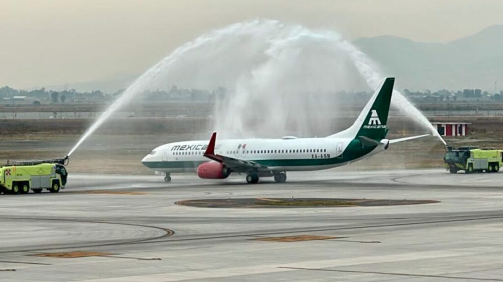 A través de un enlace directo transmitido en conferencia de prensa matutina fue presentado el vuelo inaugural de Mexicana de Aviación desde su base principal: el Aeropuerto Internacional Felipe Ángeles. La aeronave cruzó los tradicionales chorros de agua y con ese acto simbólico se le dio la bienvenida a la industria aeronáutica.