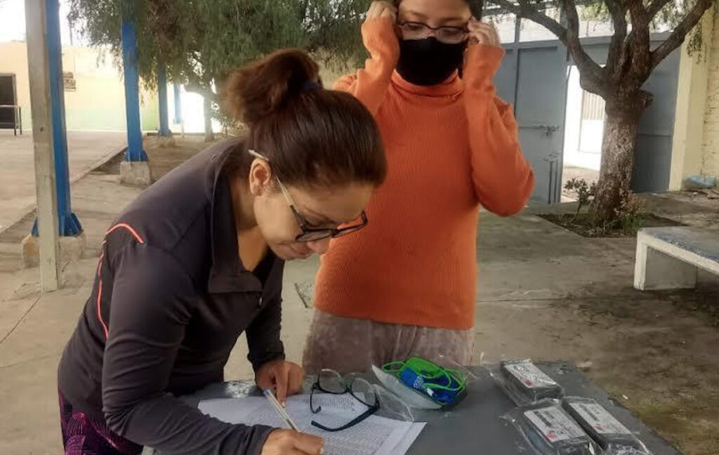 El proceso de entrega de lentes se realiza a través del personal directivo de cada plantel con estudiantes beneficiados.