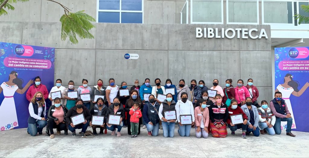 San Luis de la Paz, Guanajuato, a 4 de septiembre de 2021.- En el marco de la conmemoración del Día Internacional de la Mujer Indígena, autoridades de la Secretaría de Desarrollo Social y Humano y del Instituto para las Mujeres Guanajuatenses, reconocieron la contribución social y económica que realizan dichas mujeres.
