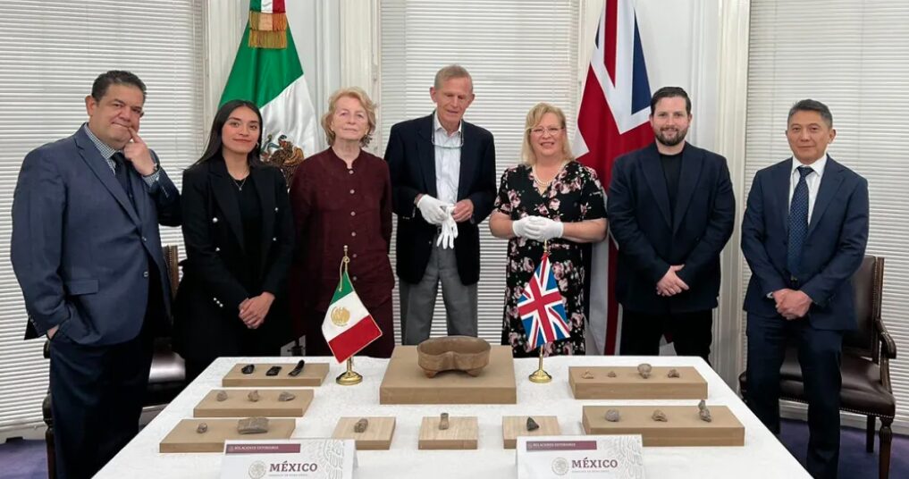 “En la sede de la Embajada de México en Reino Unido, la embajadora Josefa González-Blanco Ortiz-Mena recibió 19 piezas arqueológicas para su rematriación, como parte de un esfuerzo de restitución voluntaria acordado entre dicha oficina y el ciudadano británico Michael Johnson”, expuso el boletín.
