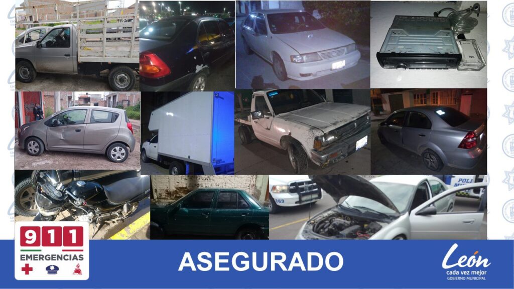 León, Guanajuato. (23 de septiembre del 2021). En hechos diferentes, las acciones preventivas de la Secretaría de Seguridad Pública y la coordinación con la ciudadanía, dio como resultado la recuperación de 10 vehículos y detención de seis personas.