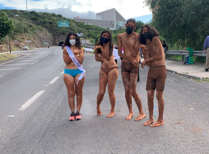 La manifestación inició en las inmediaciones del Congreso del Estado: con sólo ropa interior y con el cuerpo pintado, emularon a los cuerpos áridos.