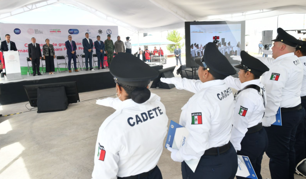 Subrayó que con la graduación de estos nuevos elementos, el Centro de Formación Policial de San Miguel de Allende, ser convierte en un ejemplo para las regiones norte y noreste, así como para para el resto de la entidad, pues al retomar sus funciones, está generando nuevos policías.