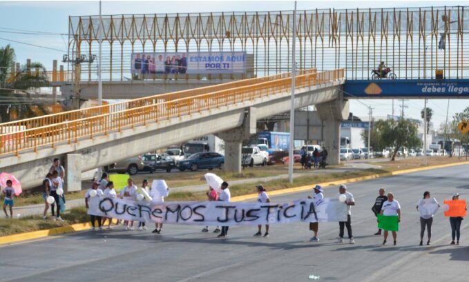Eran las tres de la tarde cuando se dieron cita los manifestantes mostraron una manta gigante con la leyenda «Queremos Justicia».