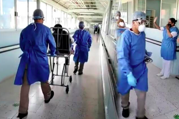 Entre aplausos una mujer que enfermó de coronavirus fue dada de alta del Hospital General de Uriangato, aunque tuvo de gravedad, logró recuperarse.