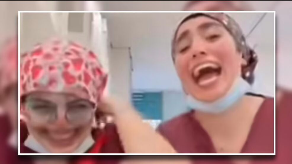 En las imágenes se aprecia a las médicas reírse frente a la cámara y una de ellas simula un grito, mientras en el fondo se oyen los lamentos de una persona.