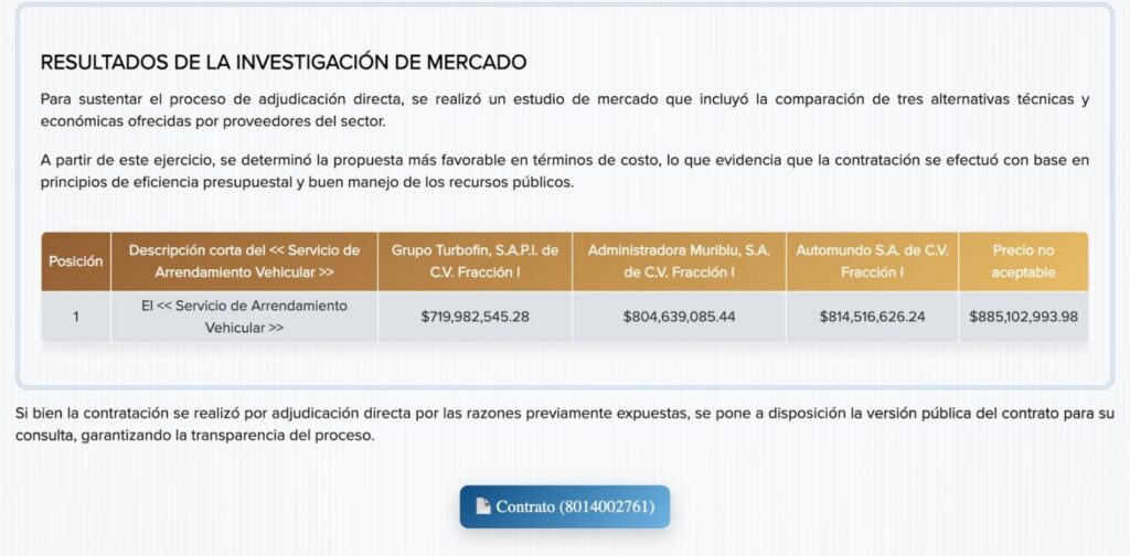 La Secretaría de Seguridad y Paz incorporó al portal “Seguridad Abierta” la información de la investigación de mercado mediante el cual se determinó la empresa proveedora para el arrendamiento de vehículos destinados a fortalecer la estrategia CONFIA, en particular el Plan Carreteras Seguras.