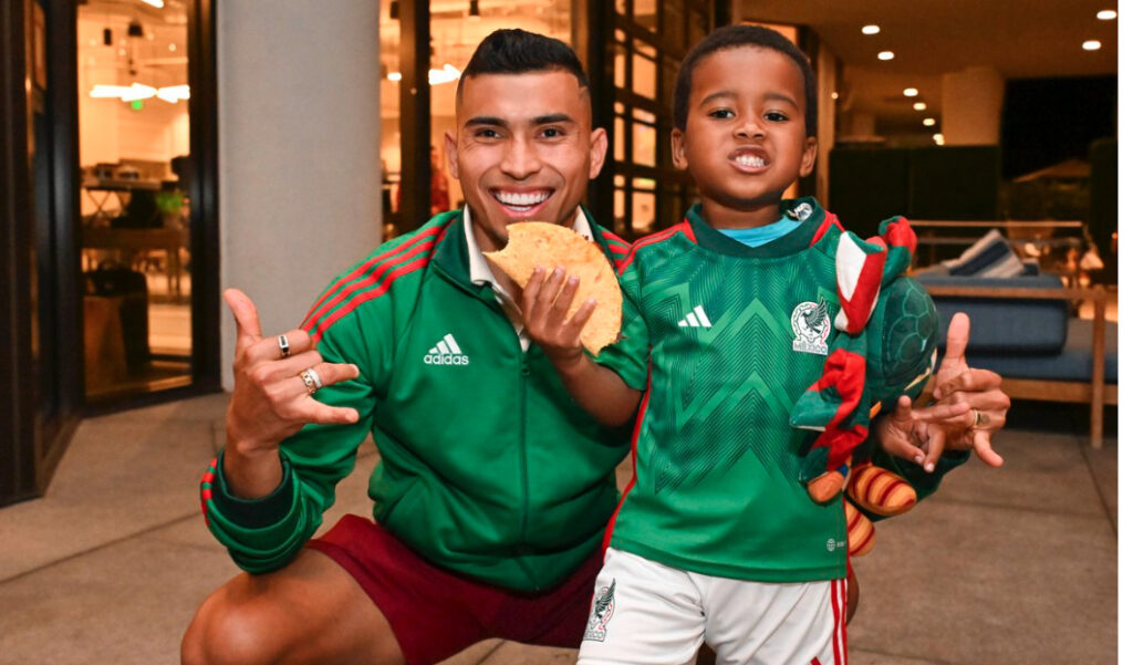 Orbelín Pineda y Santiago Giménez viajaron a Los Ángeles y sorprendieron a Zay con un peluche, uniforme del Tri, y por supuesto, unas quesadillas.