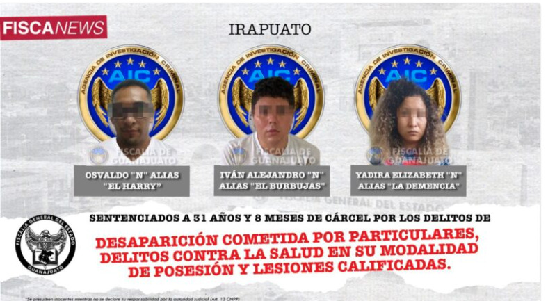 La sentencia para Yadira Elizabeth “N”, alias “La demencia”, Osvaldo “N”, alias “El Harry” e Iván Alejandro “N”, alias “El Burbuja” fue de 31 años y 8 meses de cárcel.