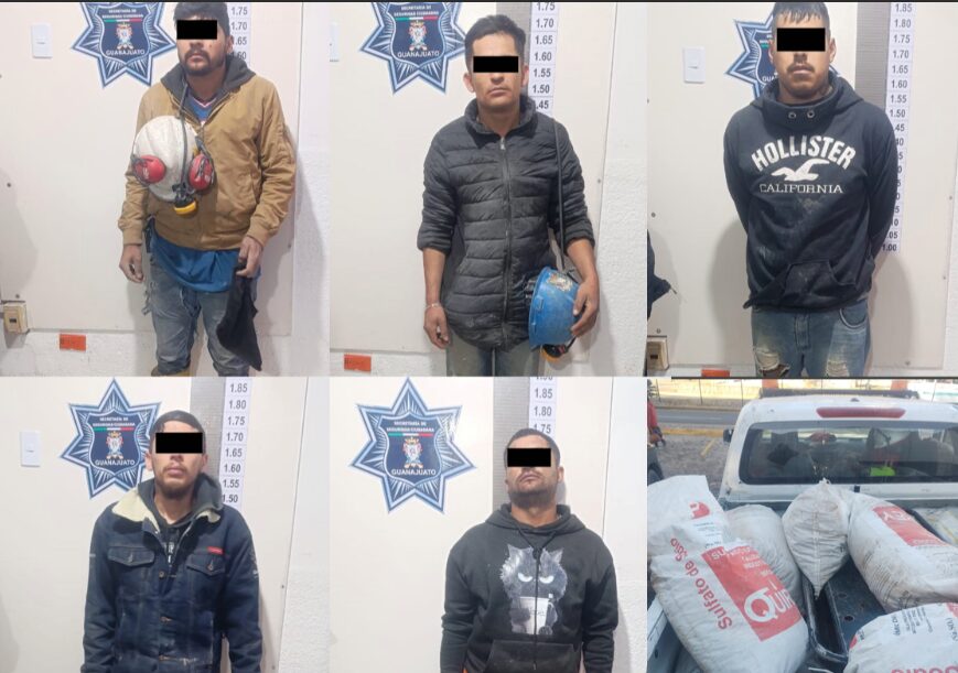 Guanajuato, Gto. (12 diciembre 2025).- La madrugada del jueves se logró la detención de varias personas al interior de la Mina Santa Cecilia, en la comunidad de Mineral del Cubo, por su probable participación en el delito de robo de mineral.