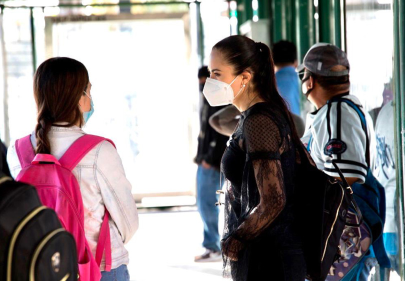 La panista publicó fotos platicando con usuarios del transporte en paraderos y en dentro de una unidad (todos usando cubrebocas), y otra caminando por la colonia Punto Verde, a un costado de la Deportiva Enrique Fernández Martínez.