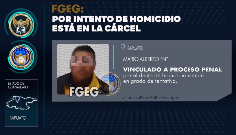 El sujeto de nombre Mario Alberto de 30 años de edad fue detenido y hoy enfrenta un proceso penal por el delito de homicidio simple en grado de tentativa, para ponerlo a disposición del Juez de la Causa.