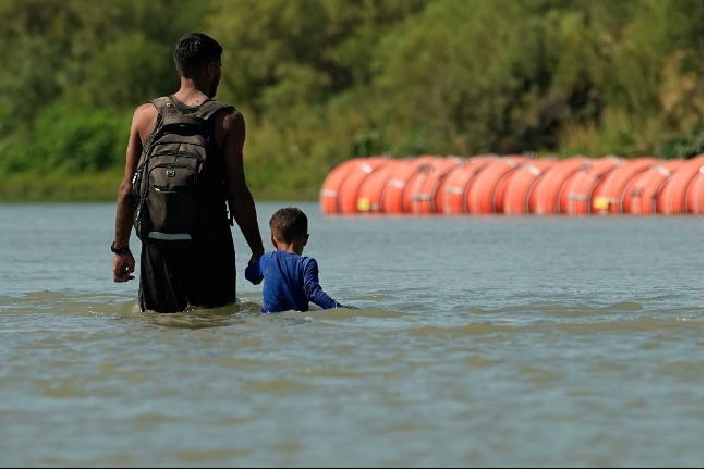 El gobernador de Texas Greg Abbott, declarando que el estado estaba siendo invadido por migrantes, ordenó el verano pasado desplegar el cordón de unos 300 metros de grandes boyas esféricas en el río cerca de Eagle Pass.