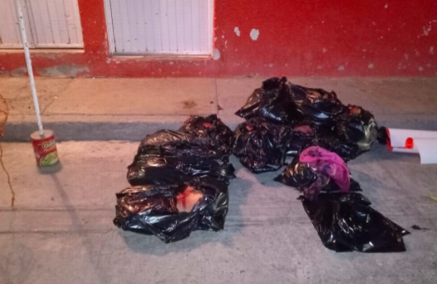 Las bolsas negras donde se encontraban los cuerpos fueron localizadas detrás del templo de las Tres Aves Marías en el Ranchito Independencia.