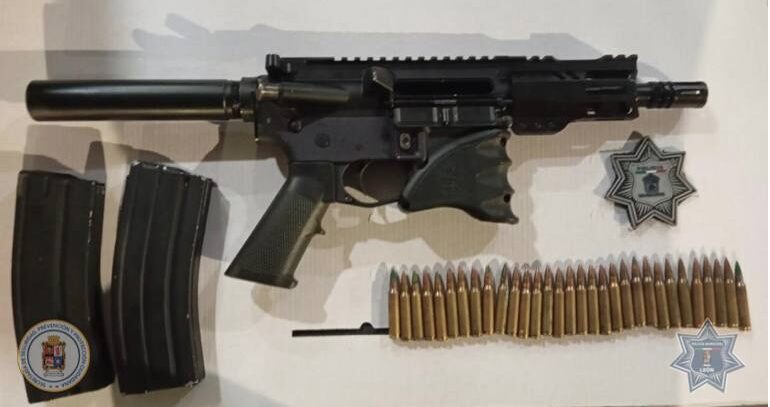 León, Guanajuato. 16 Abril 2026.- La Policía de León logró la detención de un hombre y el aseguramiento de un arma de uso exclusivo del Ejército.