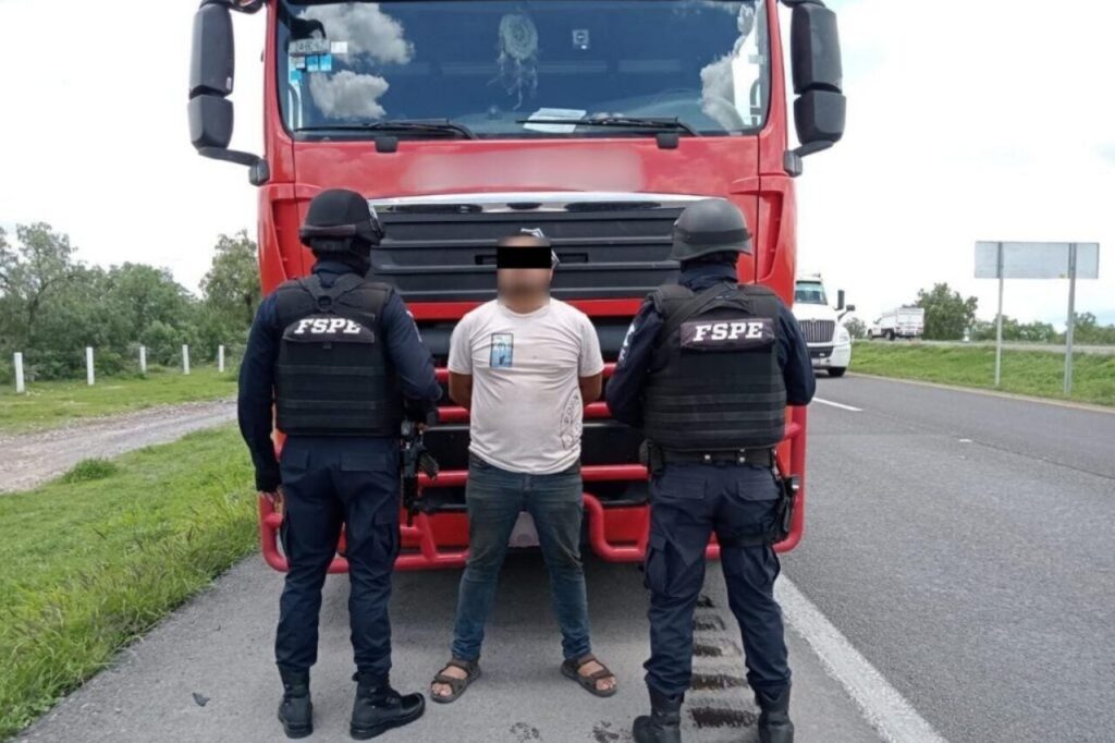Durante la maniobra evasiva, el operador trató de impactar la unidad policial. Los integrantes de las FSPE lograron detener el vehículo y confirmar que transportaba 18 rollos de alambrón, con un peso aproximado de 32 toneladas y un valor de 1.9 millones de pesos, sin que el conductor pudiera acreditar su legal posesión ni presentar documentación del acoplado.