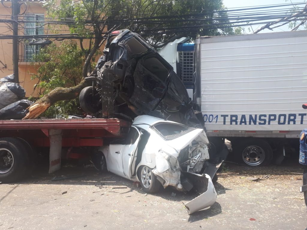 Así quedaron algunos de los vehículos involucrados tras el percance del tráiler el pasado domingo en la Av. Vasco de Quiroga en Santa Fe, en la alcaldía de Álvaro Obregón, al momento, cuatro personas fallecidas y varios heridos.