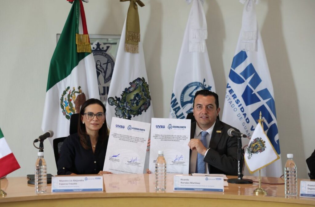 Al respecto, la Mtra. Liz Alejandra Esparza Frausto señaló: “Esta firma de este convenio entre la Secretaría de Derechos Humanos y la UVEG es un evento histórico que convierte la educación y la innovación en inclusión real en Guanajuato. Este acuerdo nos permite trabajar directamente con la universidad para beneficiar a sectores prioritarios, incluyendo migrantes, pueblos indígenas, la comunidad de la diversidad sexual y personas con discapacidad. Implementaremos acciones concretas (talleres, espacios seguros, accesibilidad, investigaciones) para garantizar que todas las personas en nuestro estado gocen plenamente de sus derechos, en línea con la visión de la Gobernadora de trabajar en equipo por un Guanajuato más justo y humano.”