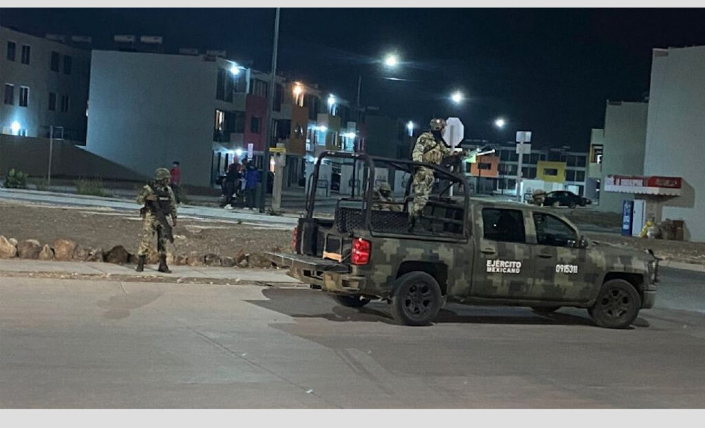 Decenas de policías municipales y de elementos de la Guardia Nacional y del Ejército cercaron los lugares tanto del evento inicial como donde finalmente terminó el auto con el muerto y el herido, resguardando toda evidencia.