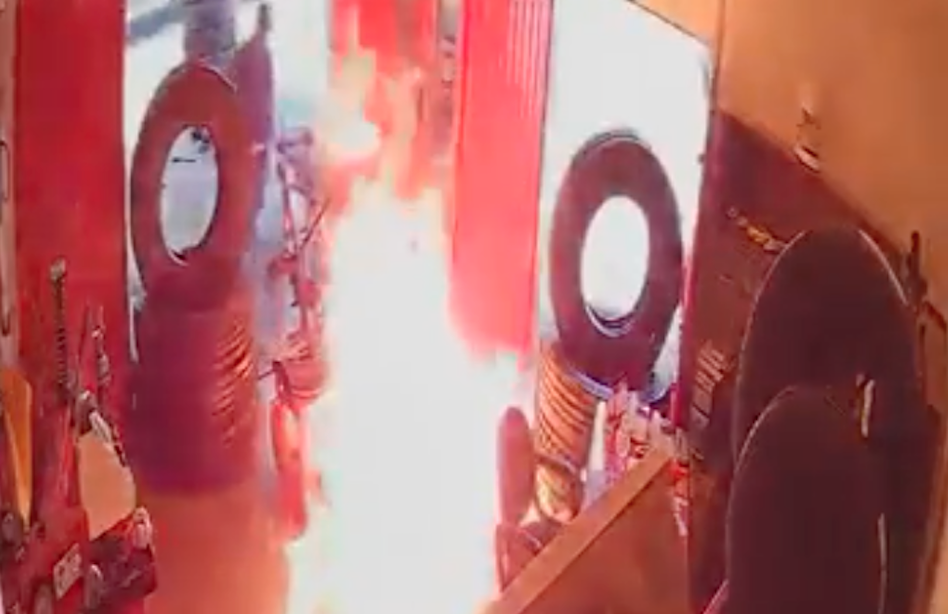 Solo unos segundos fueron suficientes para que dos #sicarios entraran a una #vulcanizadora para asesinar al encargado y luego prender fuego al establecimiento.