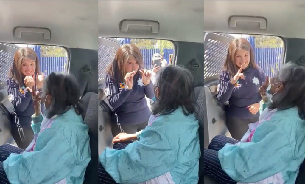 El video fue difundido en la cuenta de twitter por la Dirección de Seguridad Ciudadana de Nezahualcóyotl, en el que se pudo observar a la mujer policía explicándole con lengua de señas a la adulta mayor las instrucciones para que recibiera la dosis.
