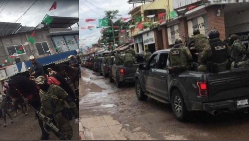 A través de redes sociales se difundieron varias imágenes y videos en donde se ven a sujetos armados y con uniformes tipo militar, además portaban las iniciales del CJNG.