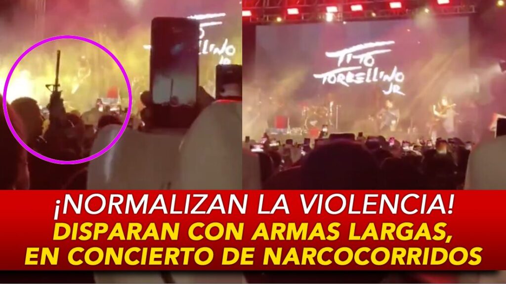 Comonfort, GTO. 2 Octubre 2025.- Sujetos fueron captados en video cuando disparaban sus armas largas en pleno concierto de narcocorridos de Tito Torbellino Jr. en el municipio de Comonfort, Guanajuato.