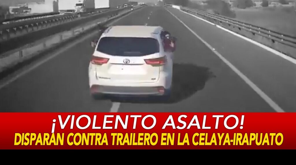 Un video difundido en redes sociales captó el momento en que sujetos fuertemente armados interceptaron y asaltaron a un transportista que circulaba por la autopista Celaya-Irapuato, a la altura del tramo de la Ciudad Industrial.