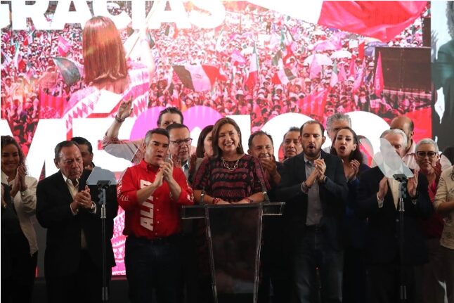 Después de darse a conocer el conteo rápido del INE, Gálvez ofreció un mensaje acompañada de los dirigentes de los partidos que la impulsaron, en el que deseó suerte a Claudia Sheinbaum, candidata de Morena y sus aliados, a quien reconoció como la futura presidenta, pero reiteró que que hubo una “intervención sistemática” desde el Ejecutivo federal.