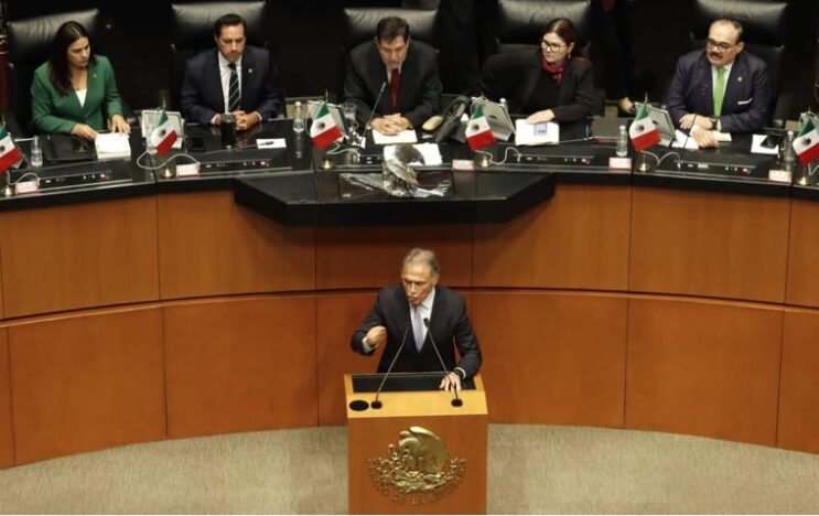 En cuanto ingresó al Salón de Sesiones fue recibido entre aplausos por morenistas y con acusaciones de traición por senadores de oposición.